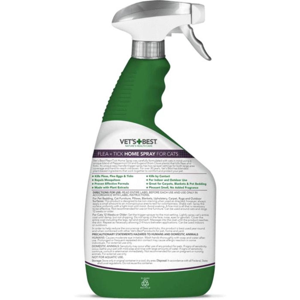 Vets Best Flea & Tick Home Spray Treatment for Dogs & Home Flea Killer ... This bottle easily refills three 32oz bottles. For over 30 years, Vet's Best has blended plant-based ingredients that work together to comfort and protect your pet. PROVEN EFFECTIVE: Whether facing an active flea and tick problem or are applying for routine prevention, our spray is scientifically proven effective against pests but gentle enough to use around the whole family.